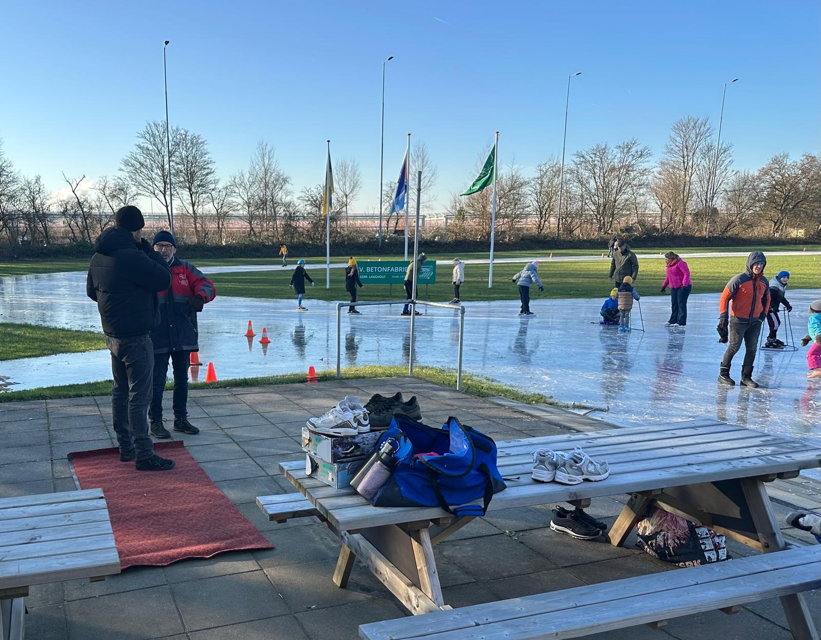 Tweede kerstdag ging de ijsbaan voor het eerst open en konden de eerste baantjes getrokken worden. Door de nieuwe skeelerbaan/ijsbaan is het nu veel sneller mogelijk om de schaatsen onder te binden. Als de vorst vannacht aanhoudt, kan er zaterdag wederom geschaatst worden.